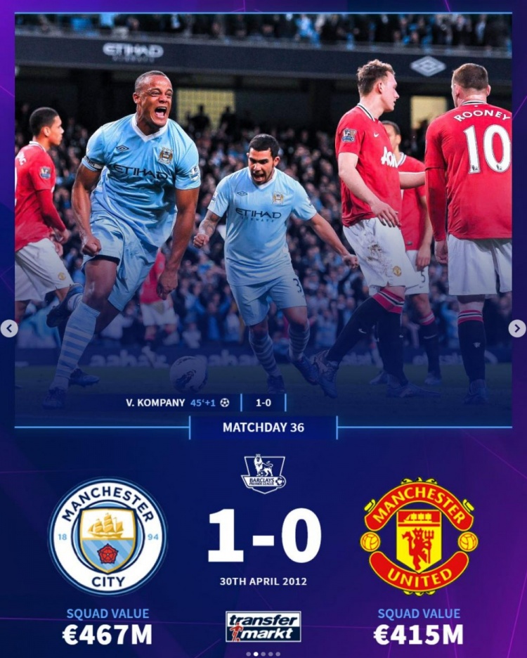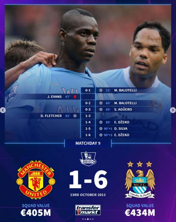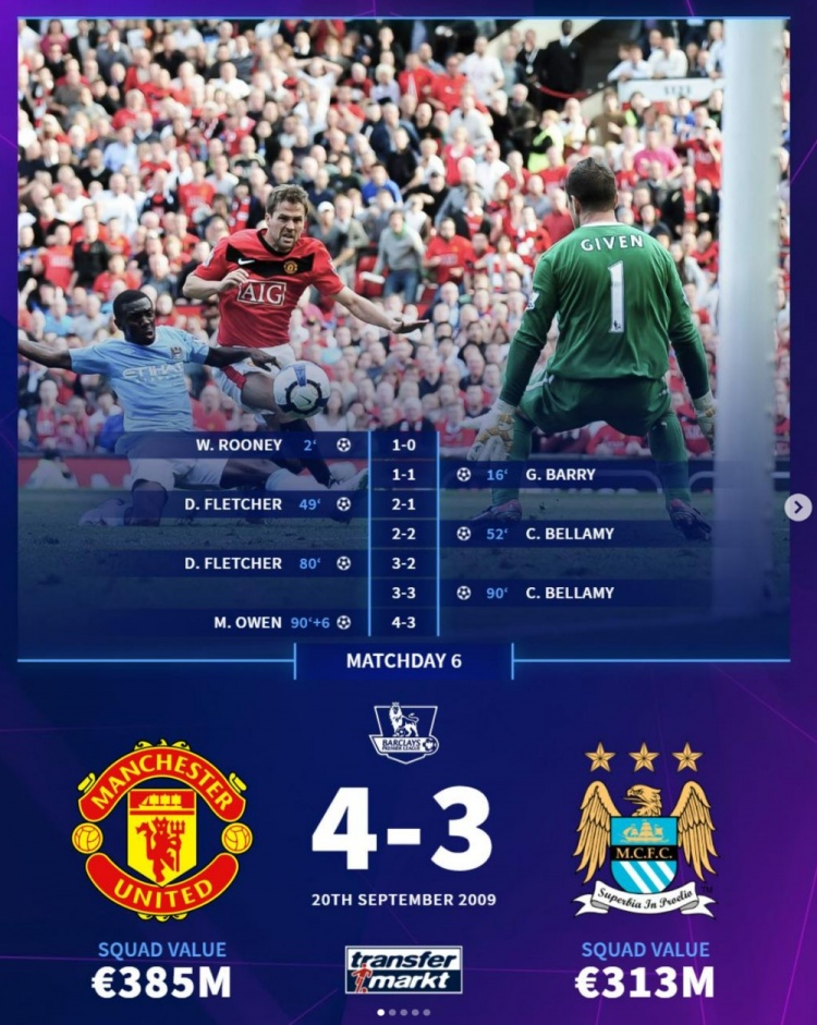 9月14日讯 本轮英超将迎来焦点战曼市德比,德转也盘点了两支球队在近些年的一些经典赛事 ,具体如下: