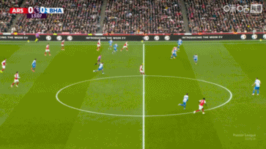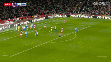 第14分钟,赖斯顶球点给萨卡,萨卡右路横传,厄德高右侧肋部得球,调整后起脚远射,球直飞下角,维尔布鲁根抢救 不及,阿森纳1-0布莱顿。↓