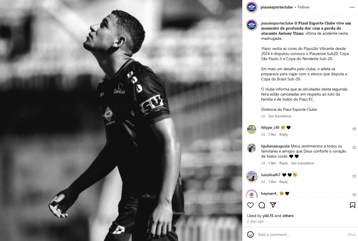 10月23日讯 据多家巴西媒体报道,20岁的巴西球员安东尼-伊拉诺骑摩托车在路上与一头牛相撞,当场离世。